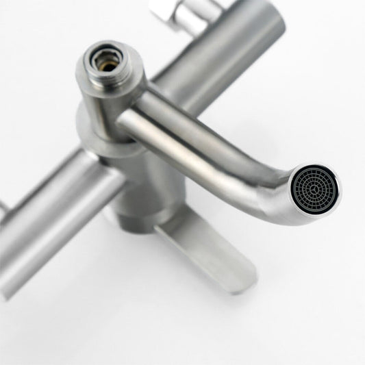 Robinet mitigeur baignoire en acier brossé – design géométrique